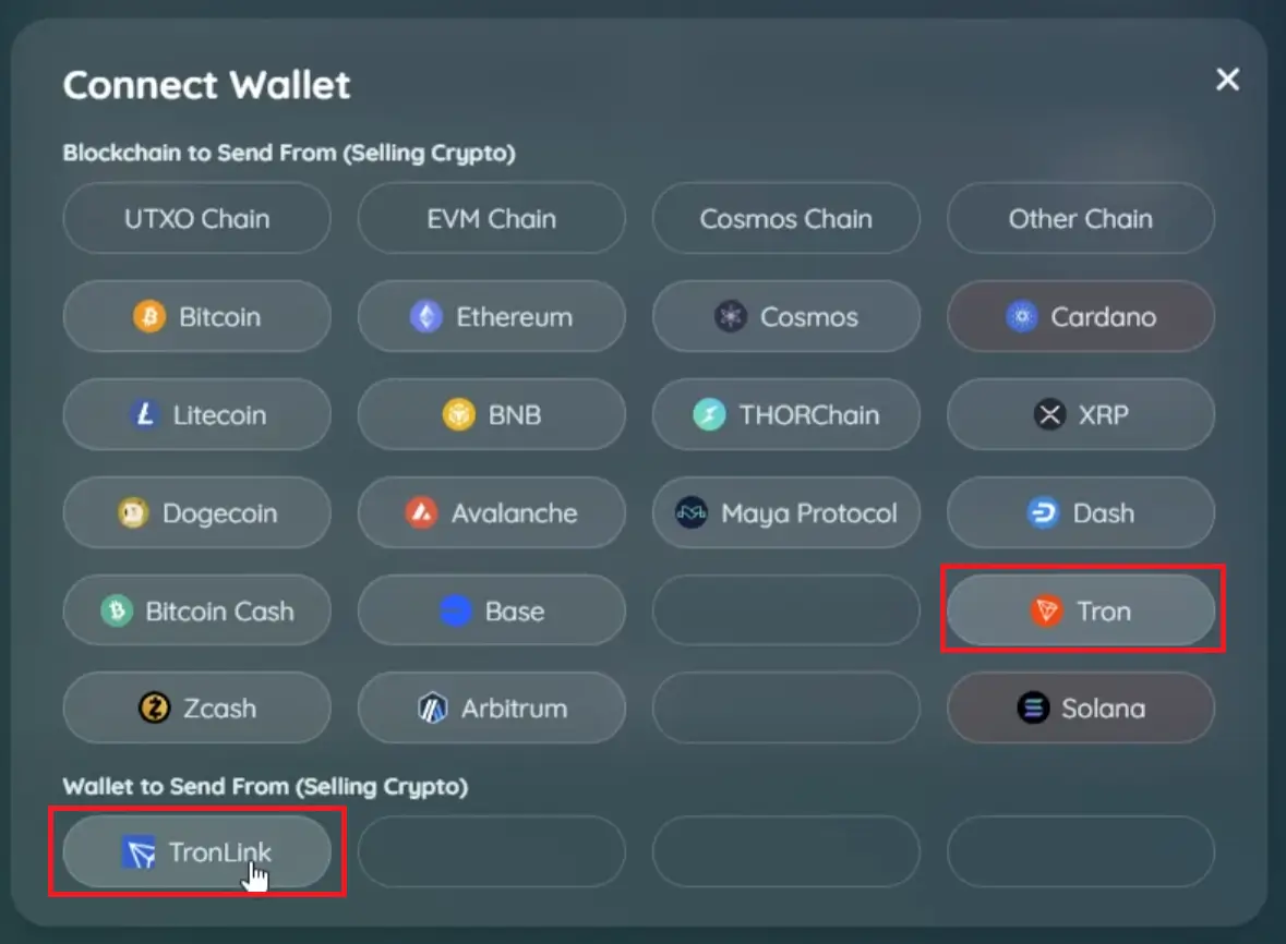 This guide demonstrates how to swap from Tron (TRX) to Ethereum (ETH) using TronLink Wallet on depouch the best cross-chain DEX.