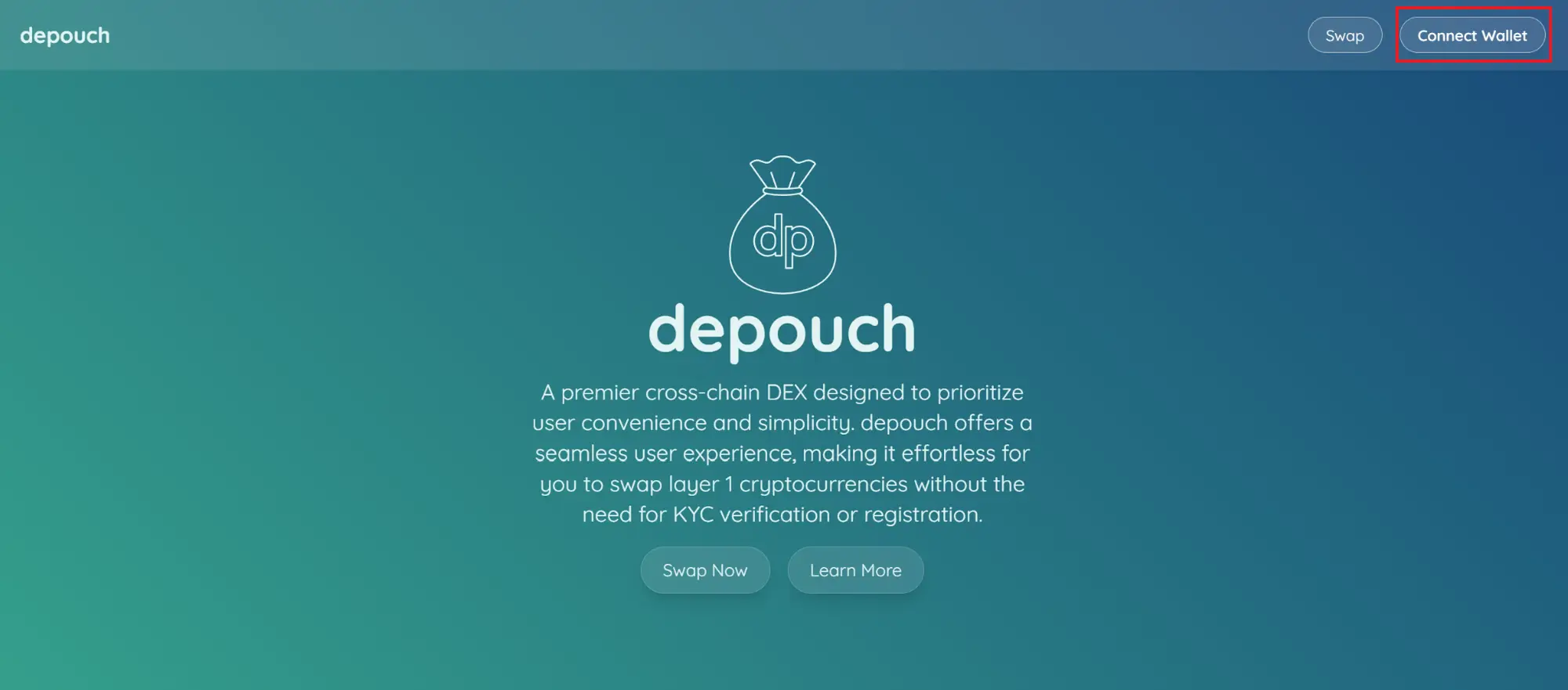 • Click Connect Wallet. The button is found in the top right corner of the page.