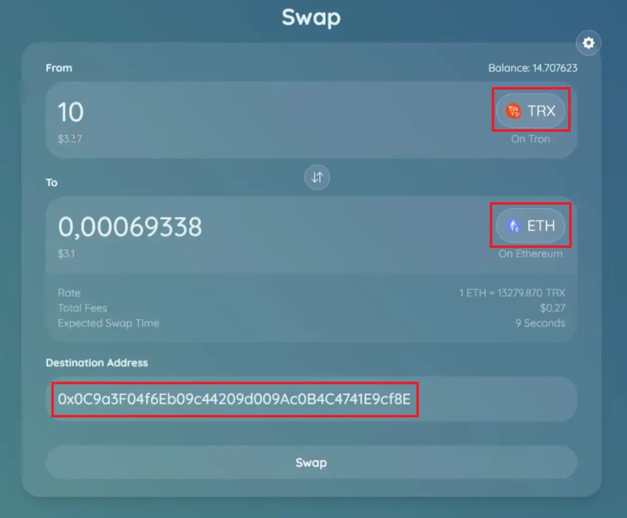 Trade Tron (TRX) to Ethereum (ETH) using TronLink Wallet
