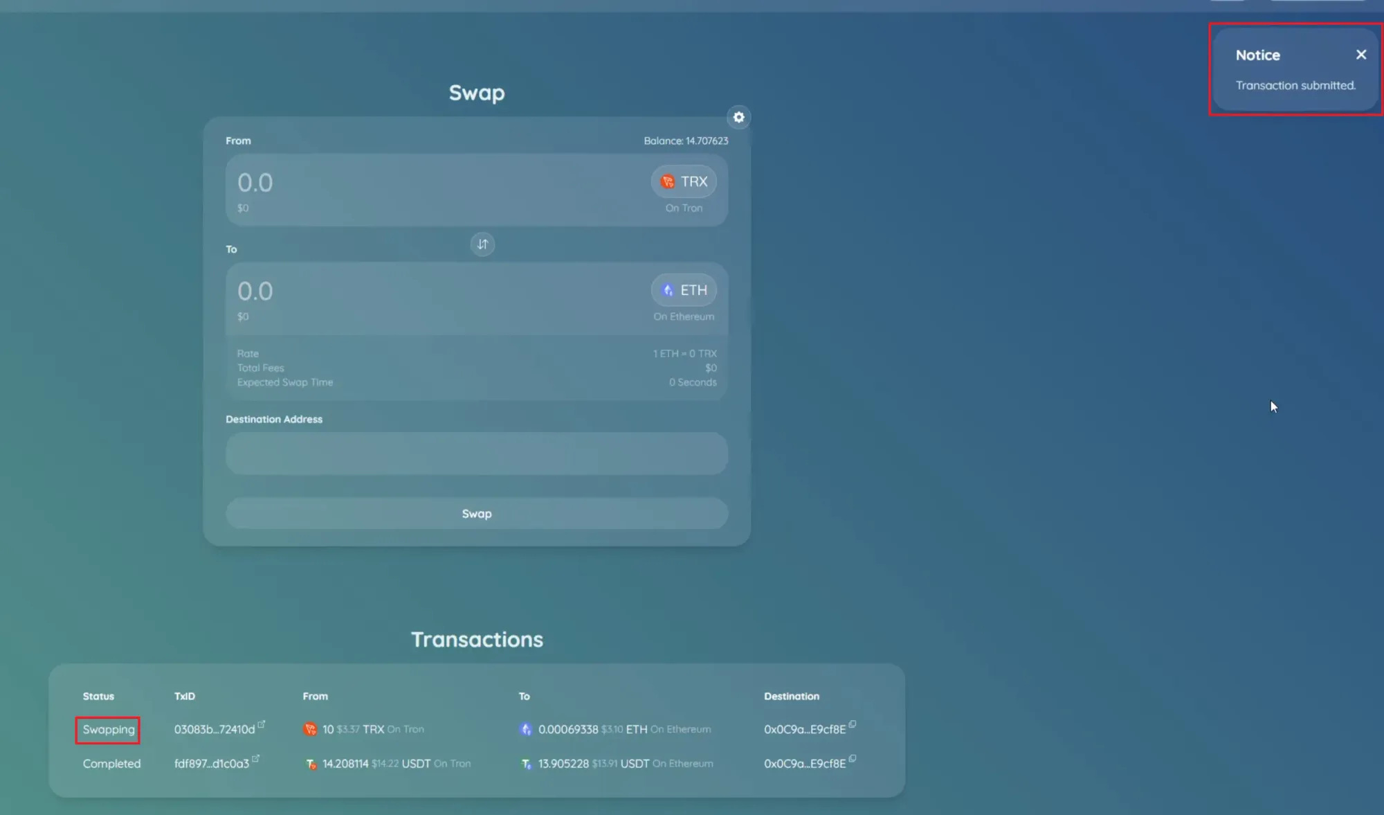 That's it! You have successfully swapped your Tron to Ethereum using the TronLink wallet on the depouch cross-chain DEX.