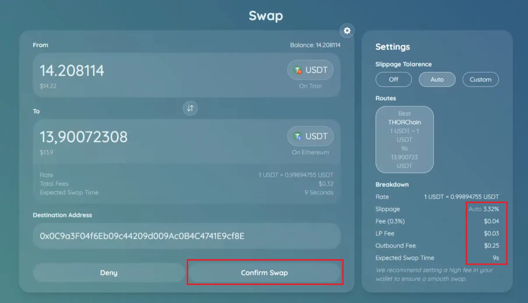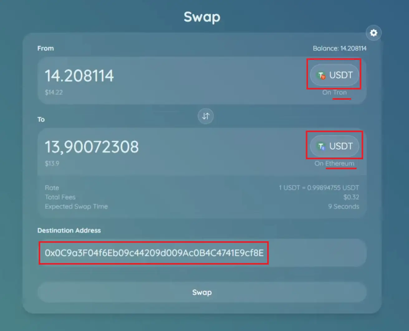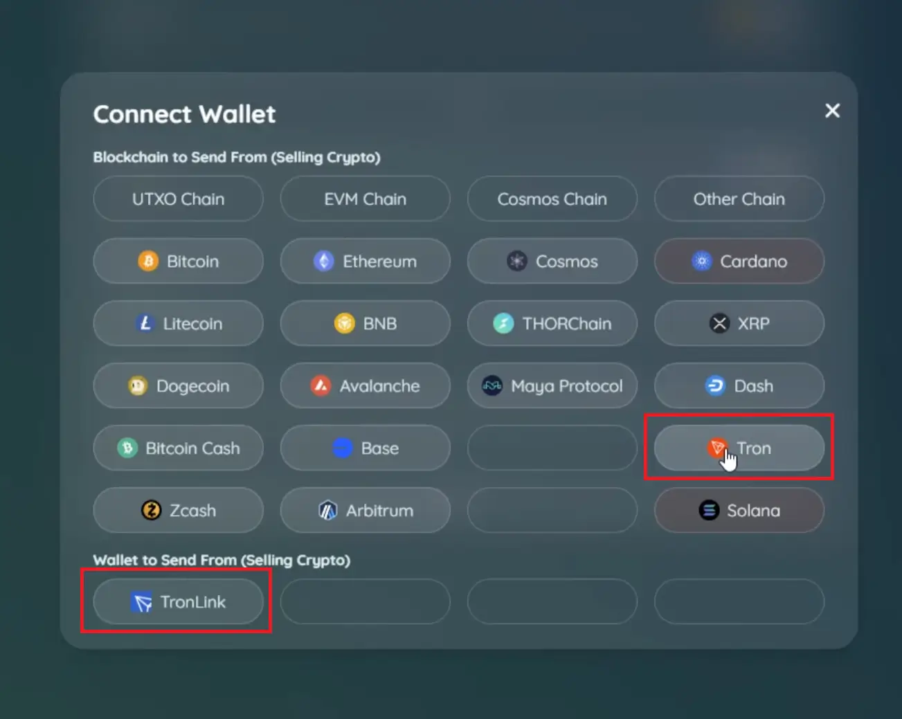 Trade Tron USDT to Ethereum USDT using TronLink Wallet