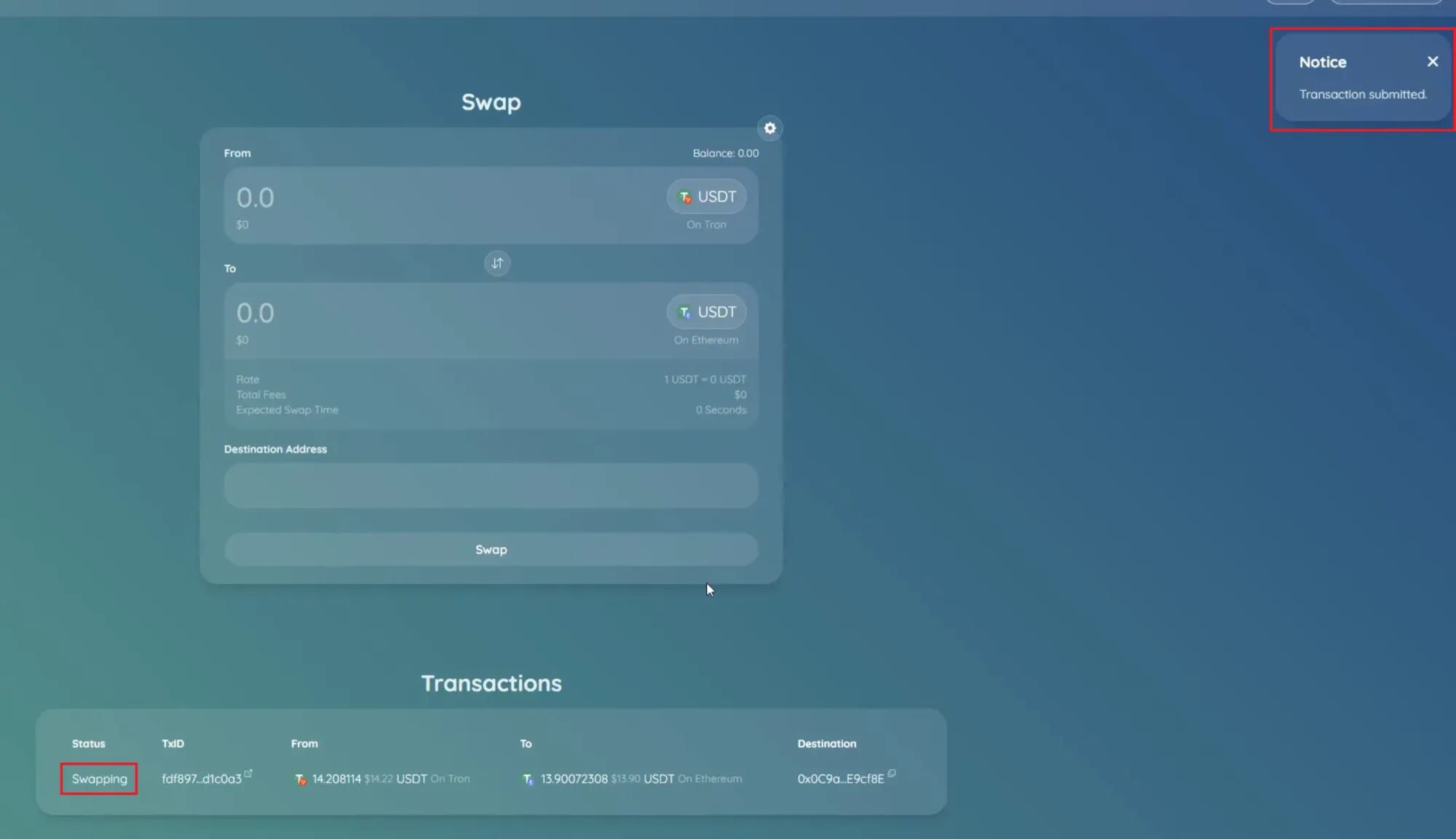 That's it! That is how you swap from Tron USDT to Ethreum USDT using depouch DEX.